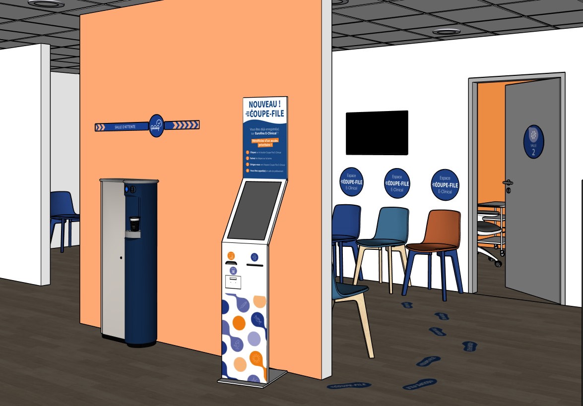 En vous enregistrant sur votre Espace Patient Eurofins E-Clinical, vous bénéficiez d’un accueil prioritaire pour vos analyses médicales. Dès votre arrivée, signalez-vous sur la borne ou via le totem, et suivez le parcours Coupe-File pour un passage rapide.